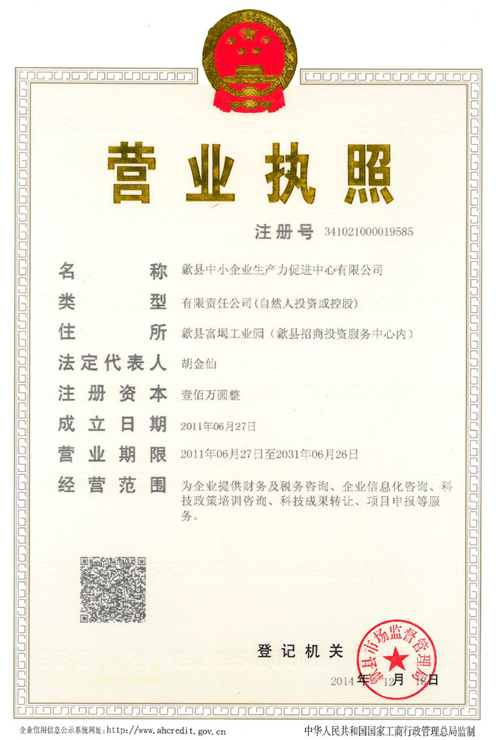 歙縣中小企業(yè)生產(chǎn)力促進(jìn)中心有限公司