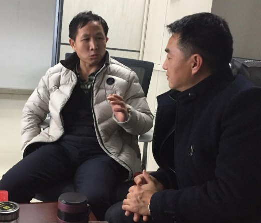 圖為:公司辦公室主任方志義(右一)與華質(zhì)卓越生產(chǎn)力促進(jìn)(北京)有限公司合肥分公司潘工(左一)洽談。