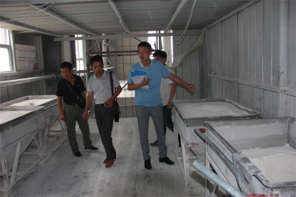 (上圖為工作組在縣開發(fā)區(qū)涉粉企業(yè)車間進(jìn)行排查)