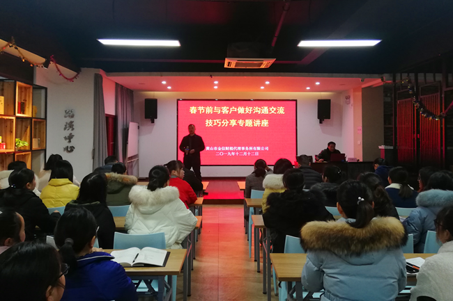 2019年12月12日,公司在一樓眾創(chuàng)空間召開“春節(jié)前與客戶做好溝通交流技巧分享”專題講座,全體員工50余人聆聽了公司總經(jīng)理胡海鋒的精彩解說。