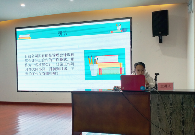 吳瑩瑩會計工作認真、鉆研業務,她結合自己日常的核算工作中積累的經驗,從抄稅報稅、票據審核、發票認證、發票開具、納稅申報等幾個方面分別向大家講解了需要注意的事項,并將自己所學到的工作技巧和簡便方法一同分享給參與人員。經過吳瑩瑩的講解,參與分享的人員對“核算會計”的日常工作事項有了更深入、全面的認識,有助于更好的為企業做好服務。