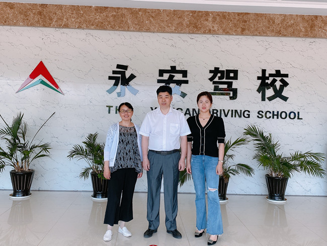 [上圖為財稅部李霞娟經(jīng)理(左)、會計杜思惠(右)與走訪對象——永安駕校總經(jīng)理許美良(中)合影。]