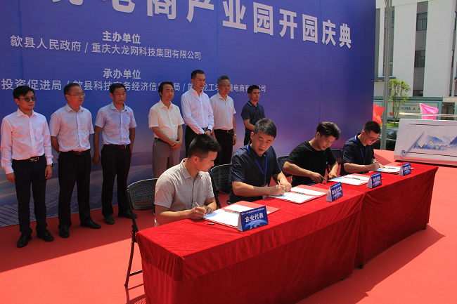 當日,縣經濟開發區管委會副主任汪璟峰,大龍網集團副總裁夏彬分別致辭,歙縣人民政府副縣長鄭小毅隆重宣布“龍工場歙縣跨境電商產業園開園!”,現場領導共同按下“共商、共建、互惠、共贏”的開園啟動按鍵。中萃茶業、徽瑞智能等一批企業現場簽約入園。