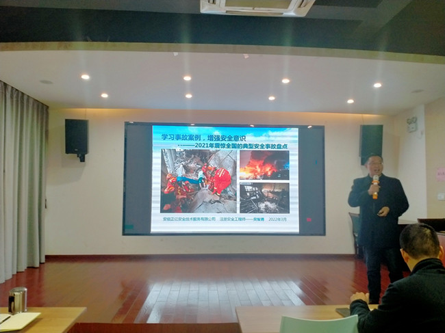 吳智勇注安師在安全生產培訓及企業安全生產隱患排查、檔案建立等方面有著豐富的工作經驗。當日,他主要圍繞2021年全國典型事故案例,重點講解燃氣爆炸、火災、交通事故、坍塌等類別生產安全事故,并結合日常生產生活,提出關注的重點和預防措施。經過吳智勇注安師的講解,參訓人員安全生產意識進一步提升,增強了應急處置和事故防范的能力,對于日常生活和生產管理都有重大意義。
