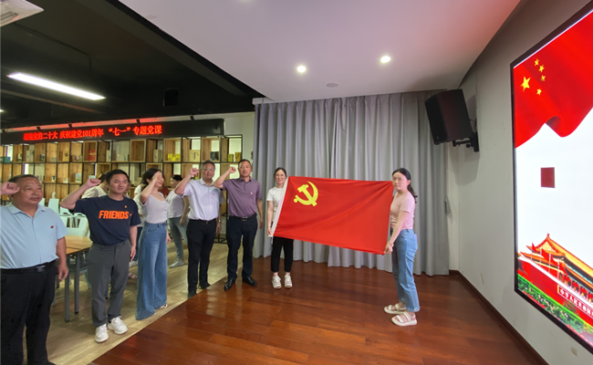 6月29日,歙縣投資促進局黨支部與金信財稅黨支部全體黨員在招商中心一樓眾創空間共同舉辦喜迎黨的二十大“七·一”專題活動。