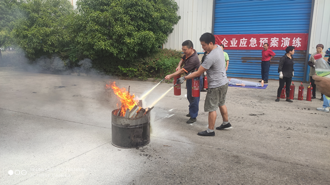 在演練現(xiàn)場,我公司注冊安全工程師吳智勇從應(yīng)急演練的目的和意義,人員分工和職責(zé),事故報告和處置等方面進(jìn)行宣傳和闡述,并講解滅火器的使用方法。當(dāng)日,模擬車間某處發(fā)生火警,立即啟動應(yīng)急預(yù)案,公司負(fù)責(zé)人黃某擔(dān)任現(xiàn)場指揮,按照預(yù)案程序和分工開展應(yīng)急救援,車間現(xiàn)場人員就近展開消防自救。通過生產(chǎn)現(xiàn)場員工及時撲救,火警得到有效處置。演練中,尤其注意讓女員工學(xué)會事故報告,學(xué)會開啟、使用滅火器,撲救初起火災(zāi),做到“打早、打小、打了”,增強(qiáng)員工消防自救的應(yīng)急處置能力。