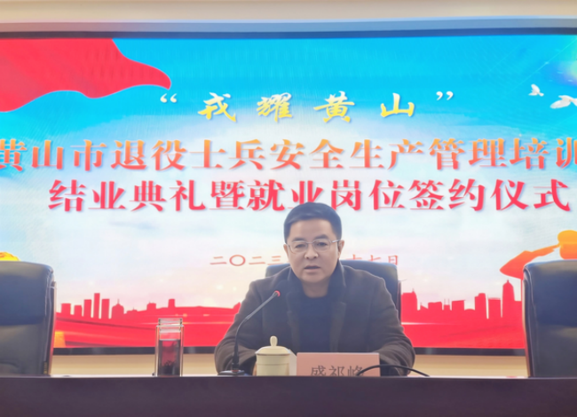 2月17日,“戎耀黃山”黃山市退役士兵安全生產(chǎn)管理培訓(xùn)班結(jié)業(yè)典禮暨就業(yè)崗位簽約儀式在歙縣青創(chuàng)職業(yè)培訓(xùn)學(xué)校舉辦。黃山市退役軍人事務(wù)局黨組書記、局長盛祁峰出席并講話,副局長朱樂華主持,歙縣應(yīng)急管理局和各區(qū)縣退役軍人事務(wù)局領(lǐng)導(dǎo)參加活動。