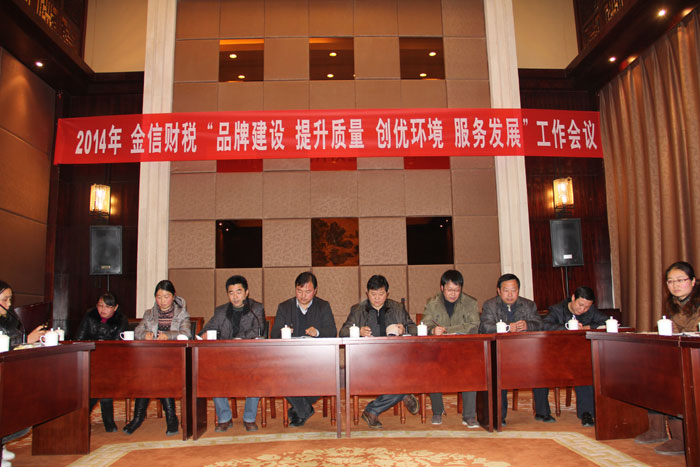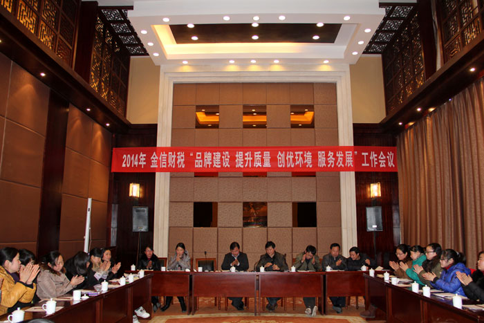2014年是金信財(cái)稅的“品牌建設(shè)年”,為推進(jìn)、實(shí)施這項(xiàng)長期、艱巨的工作目標(biāo),公司于2月15日在歙縣飯店一樓舉行了會議,會議除了公司的33名員工外,還特別邀請了經(jīng)信委的洪亮、汪錦峰副主任參加了會議。